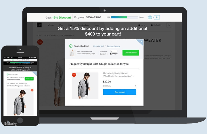 قم بجدولة النوافذ المنبثقة للتخلي عن عربة التسوق مع عروض أو خصومات لا تقاوم و حصرية في اللحظة التي يختار فيها زوارك المغادرة بهدف إعادتهم إلى قرار الشراء