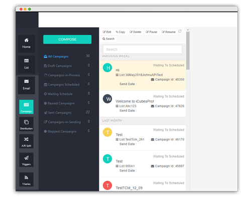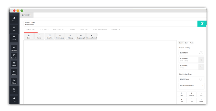 حملات التوزيع: يتيح التوزيع إنشاء إصدارات مختلفة من رسالتك واختبارها مجموعات فرعية صغيرة عشوائية من قائمتك البريدية ثم مقارنة النتائج لمعرفة لرسالة الأكثر تأثيرًا، وبمجرد حصولك على النتائج، يمكنك إرسال الرسالة لباقي القائمة في عملية يدوية خالصة.