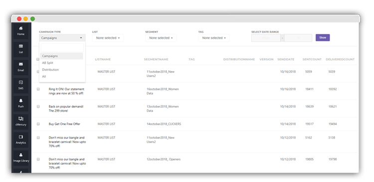 يتيح البريد الإلكتروني الخاص بـ cmercury خيارات لإنشاء حملات بريد إلكتروني بناء على متطلباتك، وإليك الأنواع المختلفة لها:
