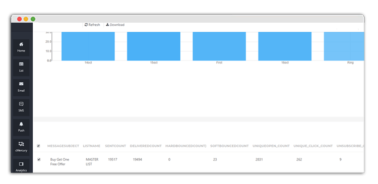تتيح تقارير حملات البريد الإلكتروني الخاصة بـ cmercury إمكانية تحليل عمليات الفتح، النقرات، الرسائل المرتدة، إلغاء الاشتراك، الرسائل غير المرغوب فيها لحملات بريدك الإلكتروني، ستحصل أيضًا على معلومات تتعلق بنظام التشغيل، برنامج البريد (عميل البريد)، والمتصفح أيضًا