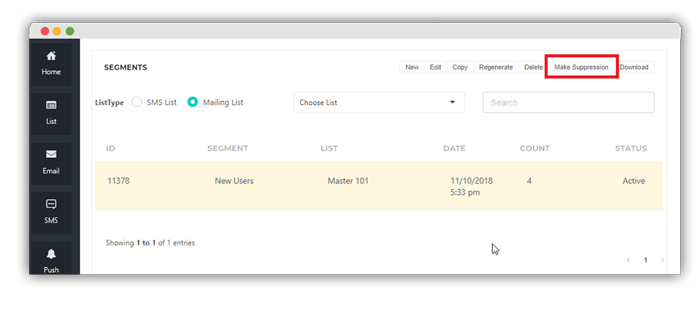 يمكنك أيضًا تحديد “القائمة المستبعدة ” من خلال النقر فوق الخيار “قم بالمنع” بعد تحديد “شريحة” في صفحة شرائح العملاء.